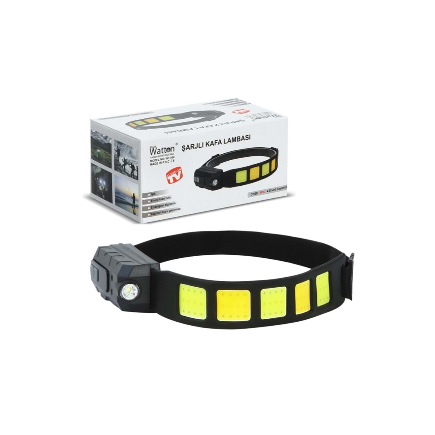 Boyutlar :Uzunluk 50mm 50m 50mm Işık Özelliği :Powerled + COB Parlak Led + Sarı ve beyaz ışık Işık Mesafesi :50 mt 150 mt Işık Rengi :Beyaz+ Sarı Çalışma Süresi :6 - 8 + 12 Saat Gövde Malzemesi :Sert Plastik Kullanım Şekli :Nokta ve Geniş Aydınlatma, Kullanım Özellikleri :Esnek Lastiği ile Kolay Sabitlenebilme, Teknik Özellikleri :Şarj Edilebilir Lityum iyon Batarya Kutu İçeriği :Ürün , Esnek Lastik , Şarj Kablosu Ampül Ömrü :100.000 Saattir Kullanım Yeri :Av, Kamp,Ev, Okul, Araba, Otel, Restorant Tasarruflu Enerji Harcama Özelliği Önemli Uyarılar :Direk Göz İle Temas Ettirmeyiniz