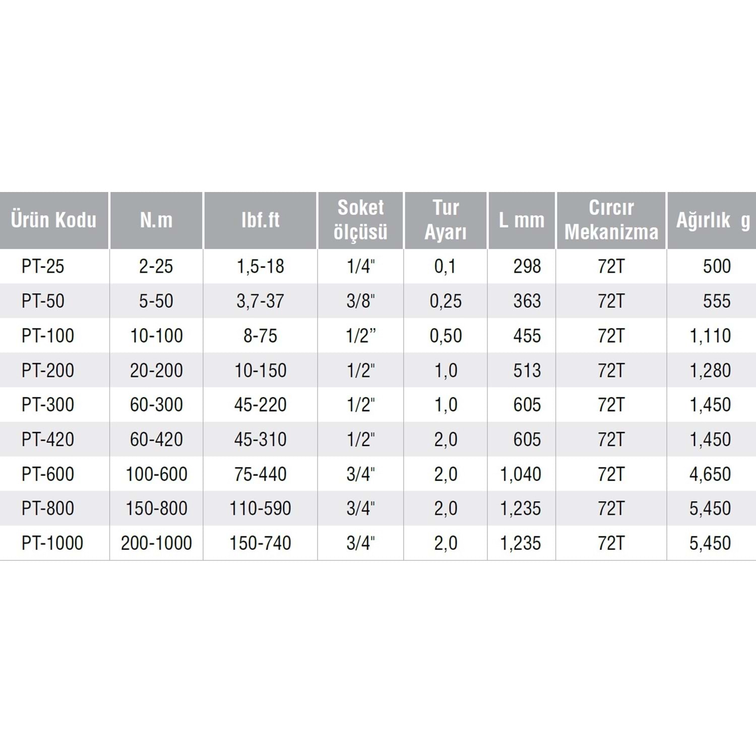 1/2" MEKANİK TORK ANAHTARI 60-300NM PT-300 GAV