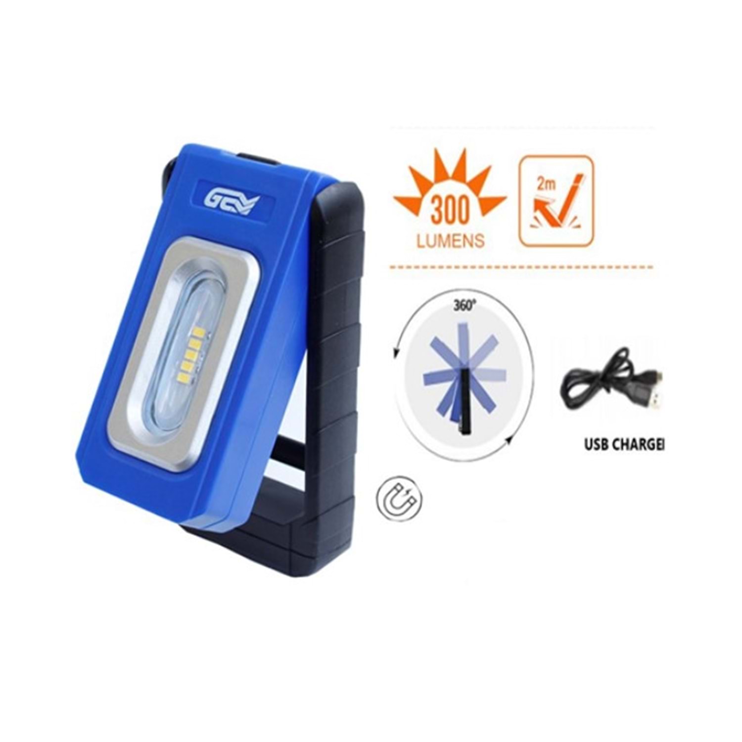 Özellikler : Işık kaynağı: Yüksek kaliteli COB ve SMD LEDs, 6,500K Işık gücü: 300 Lümen/3 Saat kullanma süresi /110 Lümen/8 Saat Pil: arj edilebilir yüksek kaliteli 3.7V 1500mAh Li-poŞarj süresi: 2 Saat Şarj edici: 1m USB Kablo Şarj süresi: 3 Saat 360 Derece dönebilme özelliği.Mıknatıslı Malzeme & Özellikleri : Dayanıklı gövde ve lens Klips üzerinde güçlü mıknatıs Led şarj gösterge, Kırmızı Şarj oluyor, Yeşil Dolu Çalışma sıcaklığı: -10°to +40°CE, RoHS, IP20, IK07 Ürün ölçüleri: 130x66x28,7 mm Ürün ağırlığı: 190 gr.