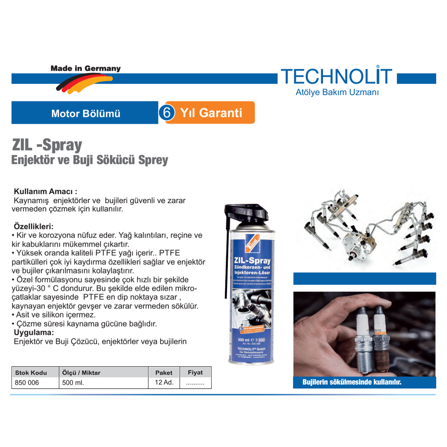 Yüksek oranda kaltel PTFE yağı çerr.. PTFE partküller çok y kaydırma özellkler sağlar ve enjektör ve bujler çıkarılmasını kolaylaştırır.